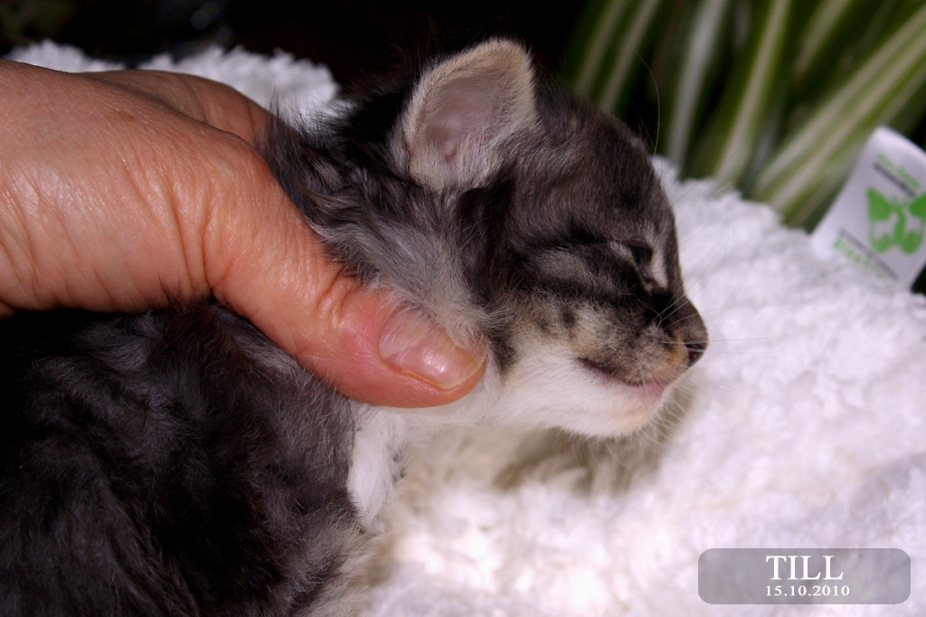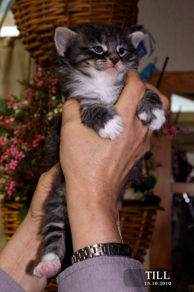 1 Tortie blotched, eine Tabby mackerel ohne weiss, eine tabby mackerel mit weissen Pfötchen, 1 tabby blotched mit weissen Pfötchen, 2 tabby's mackerel mit mehr weiss. Die Mädchen sind eigentlich schon vorreserviert. Aber wir wissen ja wie das so ist !