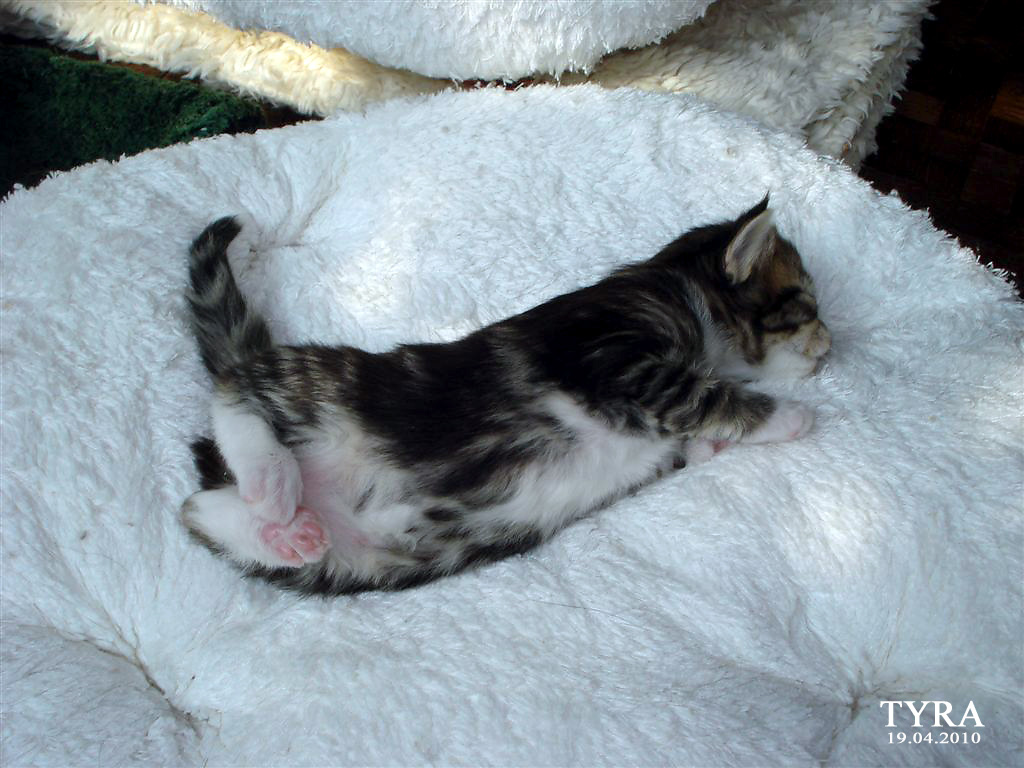 1 Tortie blotched, eine Tabby mackerel ohne weiss, eine tabby mackerel mit weissen Pfötchen, 1 tabby blotched mit weissen Pfötchen, 2 tabby's mackerel mit mehr weiss. Die Mädchen sind eigentlich schon vorreserviert. Aber wir wissen ja wie das so ist !